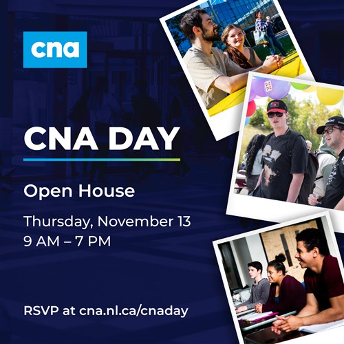 CNA Day runs on campuses across Newfoundland and Labrador on Nov. 13, from 9 a.m. to 7 p.m. Virtual sessions are also scheduled in the coming weeks for those who cannot attend in person - more information will be shared once times have been confirmed.